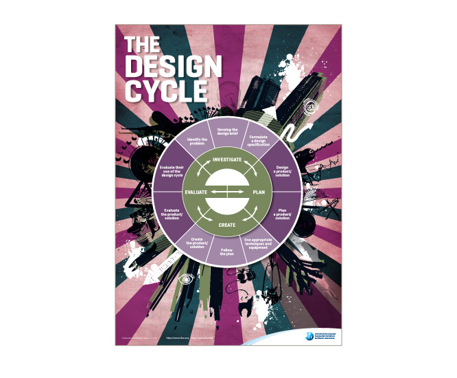 Middle-years art and design course poster to promote the course, educate students and act as classroom reference material. Concept design, art direction and diagram design. Graphics by Marc Jennings.